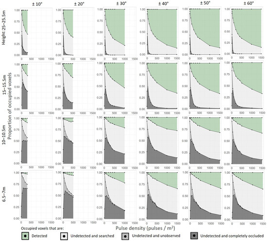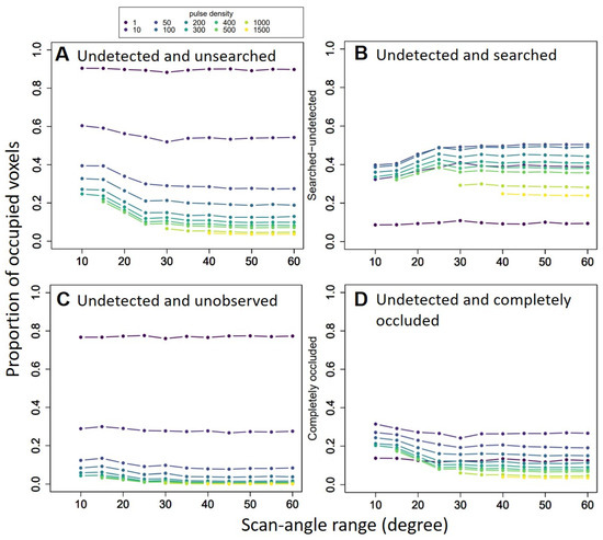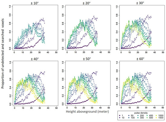 4.2. Undetected Voxels under Different Pulse Densities and Scan-Angle Ranges