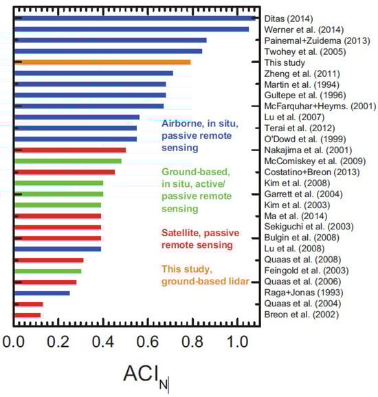 ACI parameters [21,22,23,24] are often used to quantify the aerosol effect: The indirect-effect parameter