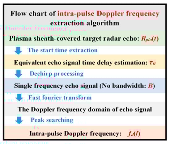 For the abovementioned Equations (17)–(35), the following Figure 4 demonstrates the flow chart of the intra-pulse Doppler frequency extraction method proposed in this study.