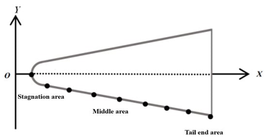 Assume the attack angle of the vehicle in the flow-field calculation is 0 and the PSh on the vehicle surface is symmetric regarding planes passing through the X-axis. The slice processing of the XOY plane is conducted according to the computation results of the of plasma flow field, for which the schematic diagram is presented in Figure 5.