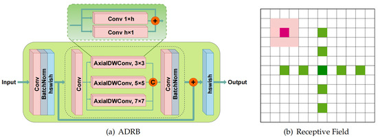 The structure of the ADRB is shown in Figure 3a. Overall, it employs a classic residual learning framework. Mathematically, it can be expressed as follows: