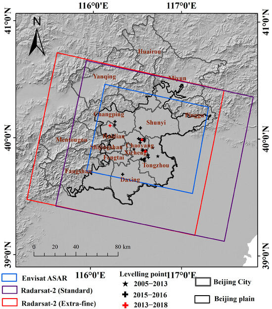 - Shi, M.; Chen, B.; Gong, H.; Li, X.; Chen, W.; Gao, M.; Zhou, C.; Lei, K. Monitoring Differential Subsidence along the Beijing-Tianjin Intercity Railway with Multiband SAR Data. Int. J. Environ. Res. Public Health 2019, 16, 4453. [Google Scholar] [CrossRef] [PubMed]