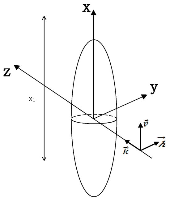 Due to its flexibility in modeling, there are many possible particle shapes with axis lengths only (sphere, needle, disk, etc.); here, we chose the ellipsoid [46]. To compute the scattering matrix for an arbitrary ellipsoid, we place the ellipsoid into a Cartesian coordinate system. For simplicity, the incidence direction is chosen to be the positive Z-axis and only the backscattering case is considered below. Figure 3 shows the ellipsoid in its standard position, i.e., its three axes (, , and ) are parallel to the Cartesian unit vectors x, y, and z, respectively.