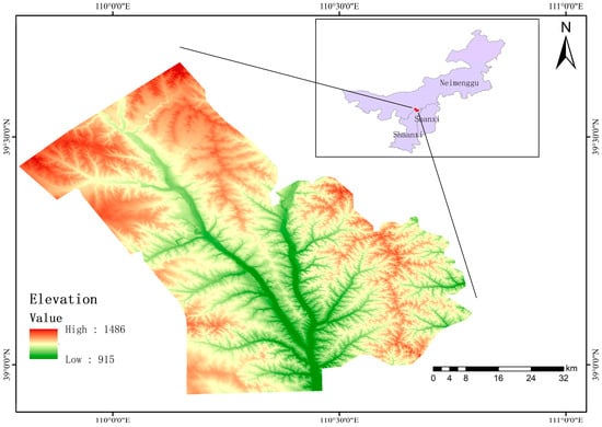 The Shendong Mining Area is situated in the northern region of Yulin City, Shaanxi Province, and the southeastern area of Ordos City (Figure 1). The site is located in the transitional region between the Maowusu Sandy Land and the Loess Plateau. It primarily encompasses three county-level administrative regions: Shenmu City, Fugu County, and Yijinhuoluo Banner. The geographical coordinates range from 38°52′–39°41′N to 109°51′–110°46′E, with an elevation varying between 905 and 1507 m. The region experiences a temperate semi-arid continental climate characterized by an average annual temperature of 6.6 °C. It is prone to frequent strong winds, dry conditions, and limited rainfall, which primarily occurs between June and September annually. The duration of the vegetation growth season is brief, while the time of dormancy is extensive. The vegetation coverage is little, and the degree of closure is inadequate. The mining area encompasses a total of 13 mines, namely the Dalutuo Mine, Halagou Mine, Bulianta Mine, Shangwan Mine, Shigetai Mine, and Bulate Mine. This expansive territory spans over 3539 km2. The primary river within the mining region is the Wul-anmulun, which is part of the Yellow River system. It runs in a northwestern to southeastern direction. The development of coal fields in the Shendong–Dongsheng Mining Area dates back to the 1920s of the 20th century. Since 1985, the state has prioritized the development of coal fields, and coal mining has persisted up until the present.