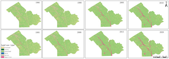 Distribution of land use types in different years.