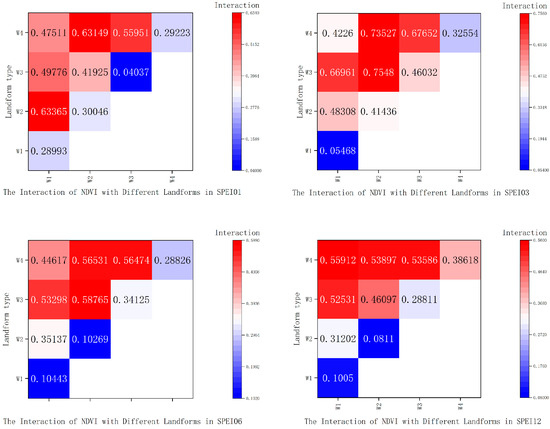 The interaction of NDVI with different landforms at different time scales in SPEI.