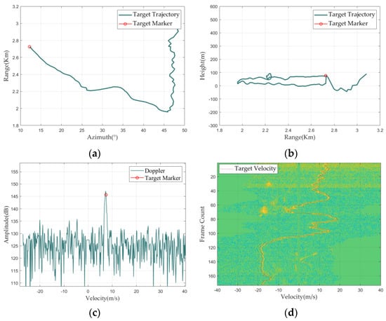 Structure of TD map. (a) Range−Azimuth graph; (b) Range−Height graph; (c) Doppler waveform graph; (d) Doppler spectrogram.