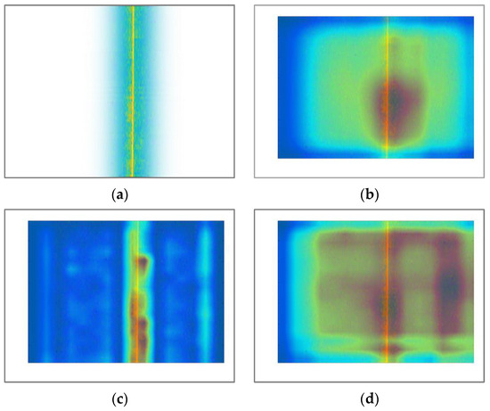 Based on the comparison of classification accuracies using different attention modules from the previous section, this section utilized RGBA four-channel Doppler spectrograms of ships as input. It employed Pytorch to load model parameters that achieve the highest accuracy on the test set during the classifier’s training process. A post hoc visualization explanation method based on CAM, Score-Cam, was used, and the last convolution layers of ResNet34, ResNet34_CA, and ResNet34_CBAM networks were input into the Score-Cam [37] module. The CAMs of these three networks are displayed respectively.