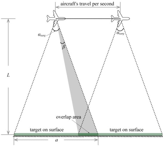Among them, a is the coverage distance, L is the target distance, is the FOV angle, and β is the stable accuracy threshold. The stable accuracy calculation principle is shown in Figure 2. When the coverage distance is 111 m and the target distance is 3000 m, the FOV angle is 2.12°. Therefore, if the stable accuracy is less than 0.530°, the image stitching is effective.