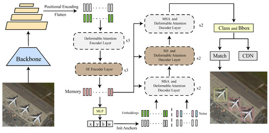 In this study, as DINO [13] exhibited the SOTA performance among the current DETR [6] series models, we used DINO [13] as the baseline in the experiments and improved it to better meet the requirements of RSOD.