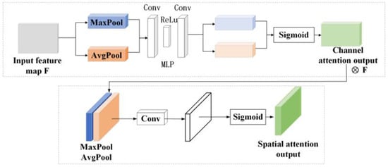 The CBAM comprises a channel attention mechanism and a spatial attention mechanism. The channel attention mechanism evaluates the importance of each channel and assigns corresponding weights, while the spatial attention mechanism identifies the positions of significant regions in the spatial domain. The structure of the CBAM is shown in Figure 7.