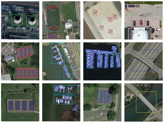 DIOR [18] is a large-scale benchmark dataset specifically designed for image object detection via remote sensing; it was introduced by Northwestern Polytechnical University in 2019. This dataset comprises 23,463 remote sensing images and 192,472 object instances, with each image having dimensions of 800 × 800. The DIOR dataset encompasses 20 categories, including airplane (APL), airport (APO), baseball field (BF), basketball court (BC), bridge (BR), chimney (CH), dam (DAM), expressway service area (ESA), expressway toll station (ETS), golf field (GF), ground track field (GTF), harbor (HA), overpasses (OP), ship (SH), stadium (STA), storage tank (STO), tennis court (TC), train station (TS), vehicle (VE), and windmill (VM). The DIOR dataset is rich and diverse, making it an important resource when developing technologies for object detection via remote sensing. This paper conducts experiments based on the DIOR dataset to ensure that our results are robust.