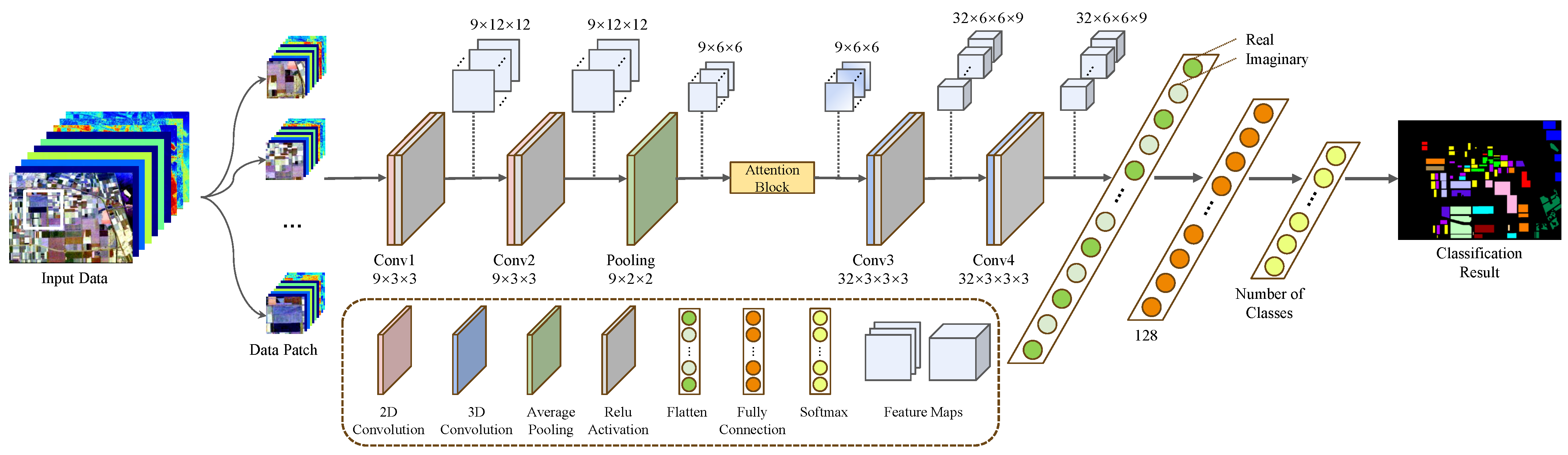 Li, W.; Xia, H.; Zhang, J.; Wang, Y.; Jia, Y.; He, Y. Complex-Valued 2D-3D Hybrid Convolutional Neural Network with Attention Mechanism for PolSAR Image Classification. Remote Sens. 2024, 16, 2908. https://doi.org/10.3390/rs16162908