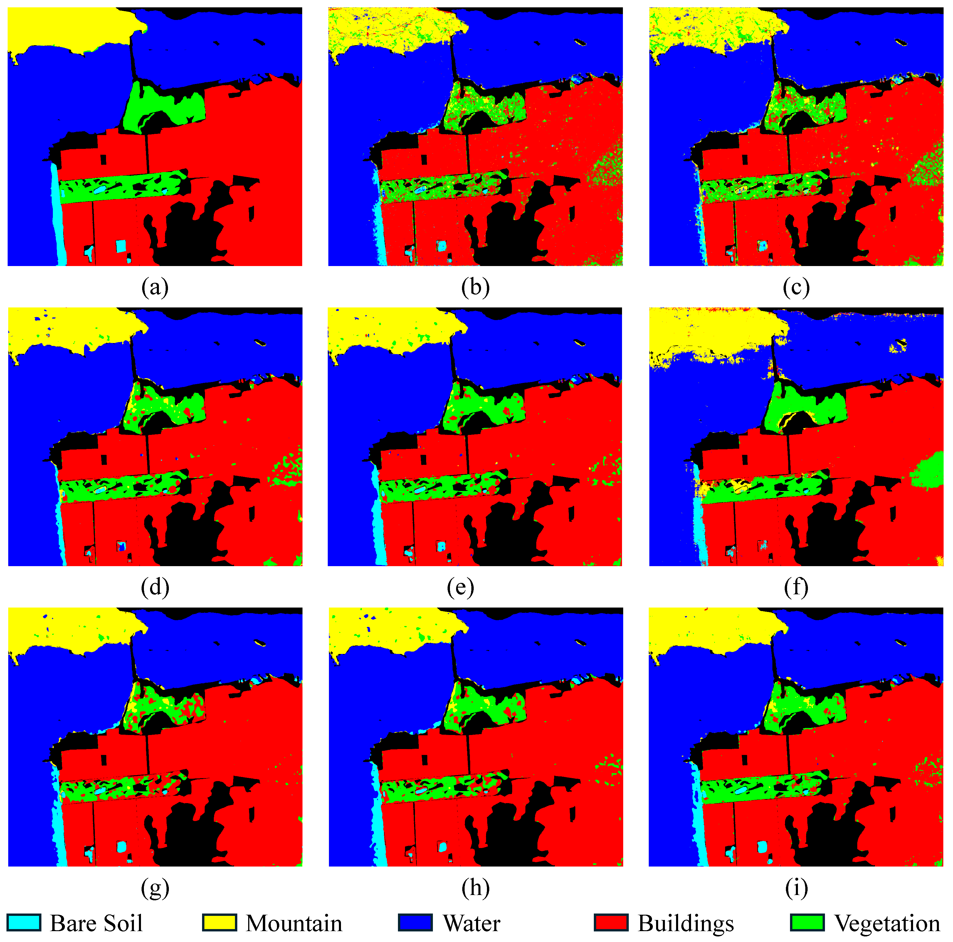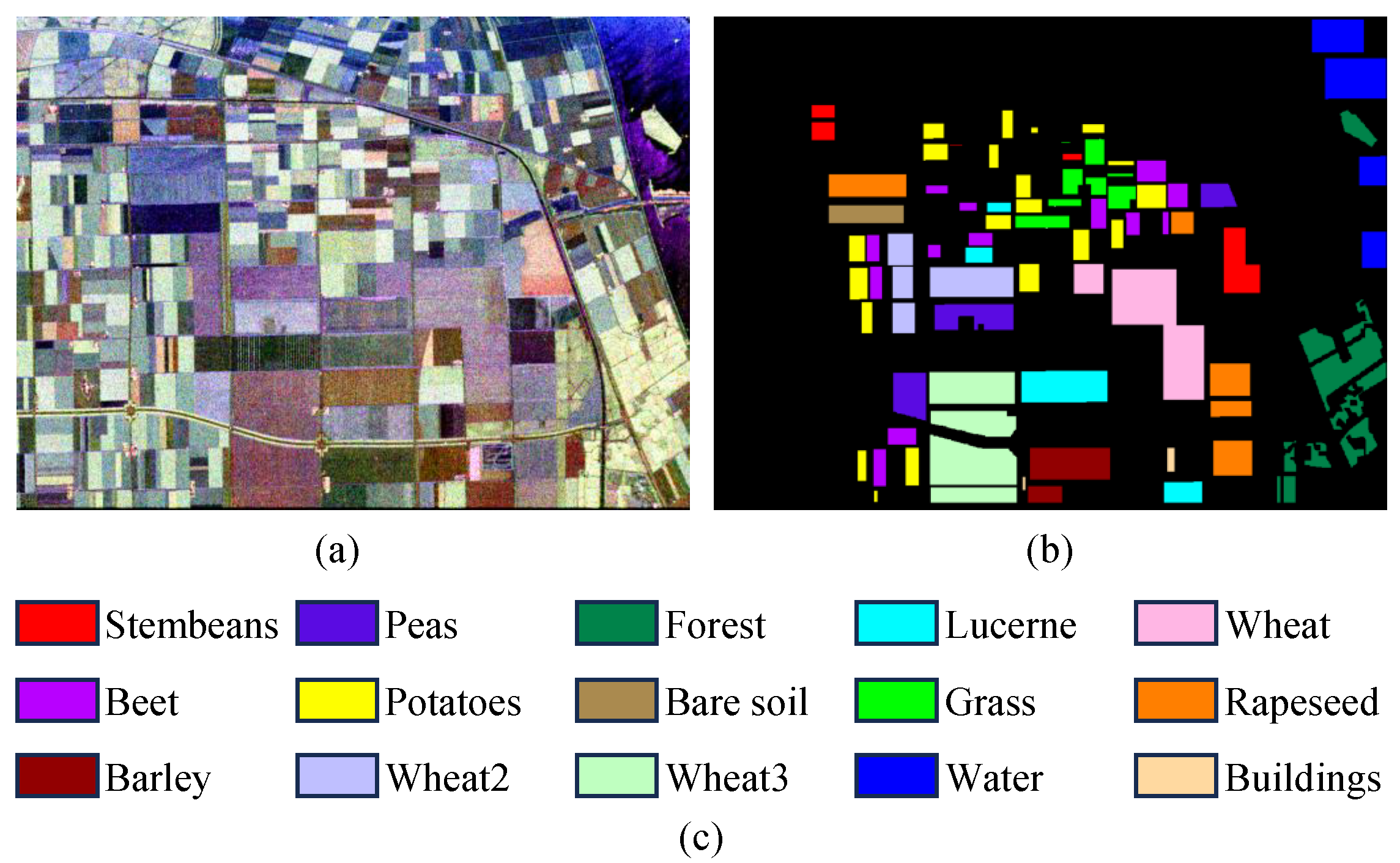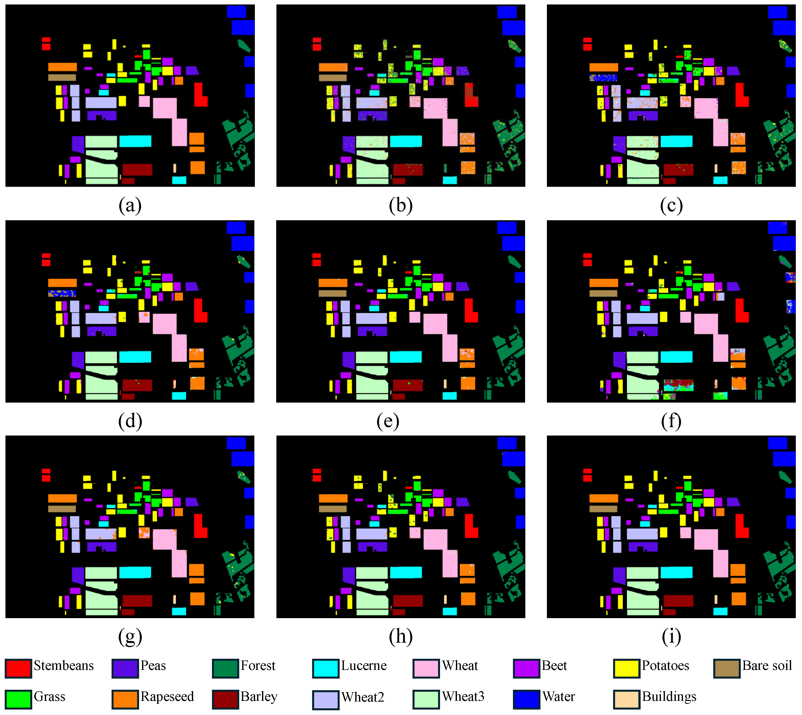 | OA (%) | 87.98 ± 0.041 | 85.74 ± 0.081 | 92.33 ± 0.110 | 93.12 ± 0.212 | 90.57 ± 2.918 | 93.64 ± 0.006 | 92.87 ± 0.312 | 95.34 ± 0.043 |