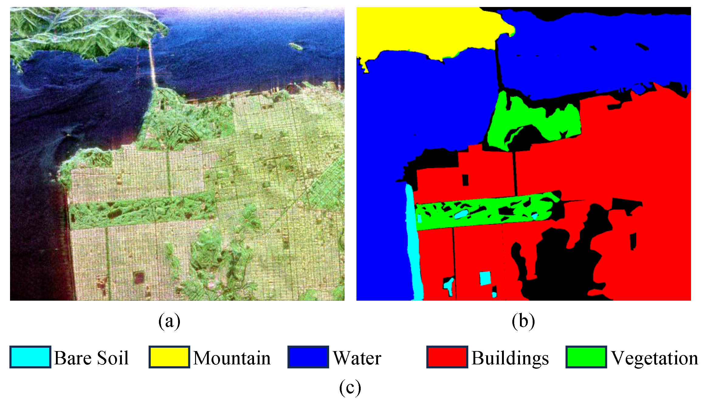 - Cao, Y.; Wu, Y.; Zhang, P.; Liang, W.; Li, M. Pixel-wise PolSAR image classification via a novel complex-valued deep fully convolutional network. Remote Sens. 2019, 11, 2653. [Google Scholar] [CrossRef]