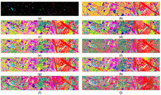 (2) Houston University (Houston) dataset: The Houston dataset is gathered over the campus of University of Houston, Houston, USA. The spatial dimension size of the Houston dataset is 349 × 1905 pixels, with 144 spectral bands from 380 to 1050 nm, and the spatial resolution of Houston is about 2.5 m per pixel. The Houston dataset contains 15 categories, and the number of samples used for training, validation, and testing are recorded in Table 2.