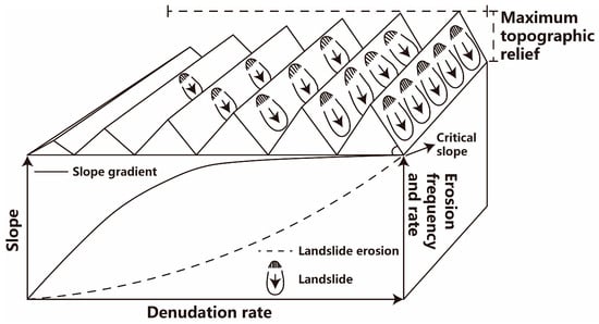 Map showing the diagram of slope gradient growth and landslide erosion (revised from [24]).