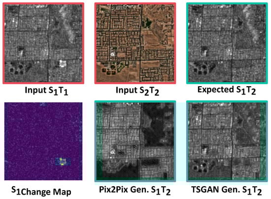 To address the issue of uncertainty in translating Opt2SAR data, we adopted a solution that involved using older Sentinel-1 data () as input, along with current Sentinel-2 data (), to generate Sentinel-1 data for the current timeframe (). By doing so, we transformed the problem of “translating optical data to SAR data” into the question of “how SAR data would change based on the changes in optical data” or “SAR temporal shifting”, a term borrowed from video generation literature [39]; our method was inspired by next frame generation deep learning papers, where the aim is to predict the next frame of a video based on previous frames time series or induced conditions [40]. However, this innovative approach also introduces a formidable challenge, which we have termed the “curse of copy-and-pasting”.