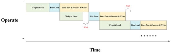 As shown in Figure 7, we design a two-stage pipeline architecture for the convolution operation module and configure an enable signal to control the start of the two-stage pipeline operation. If the two-stage pipeline operation is enabled, while the data flow is processed and saved to the cache, the off-chip storage starts writing weight parameters to another set of weight registers. The architecture will wait for the parameters for the next channel operation to be loaded and the data flow processing to be completed before loading the next instruction.