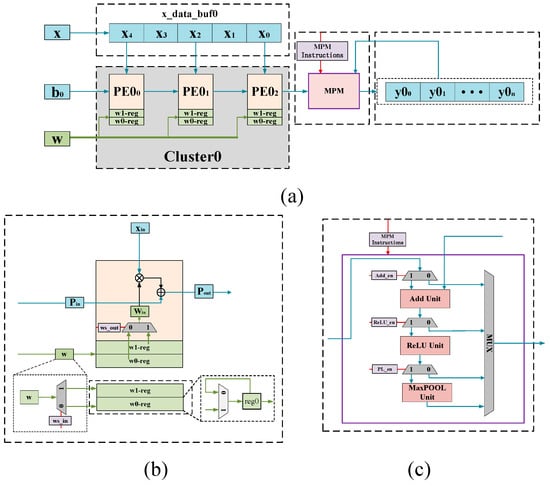 The APA Controller is responsible for assisting the APA to complete the average pooling function. The OCS Controller is responsible for controlling the reading and writing of data streams of Ping-pong CBUF, and also controls the residual buffer (Res Buf), which stores the identity map in the residual structure. The CPC Controller is in charge of assisting the CPC to call the calculation engine of the corresponding module and control the output selection signal. The MPA Controller is responsible for assisting each multifunctional processing module (MPM) in MPA to perform summing, activation, and pooling operations on the corresponding channels.