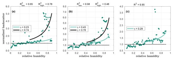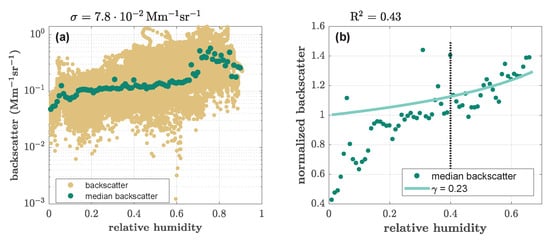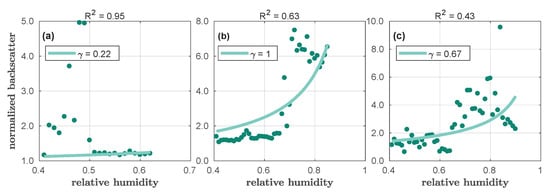 Appendix A.3. Backscatter Development with Relative Humidity for the Subdivided Datasets