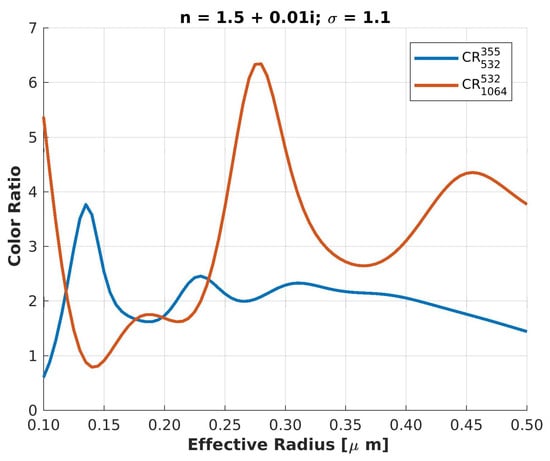 - An illustration of the often complex interpretation of the lidar data, and in particular, the color ratio. A Mie calculation was performed to obtain the relation between the color ratio and the effective aerosol radius. We showed that by three backscatter coefficients (two color ratios, no extinction coefficient) the hygroscopic growth for a large, relevant size interval could be captured with only mild assumptions on the refractive index.