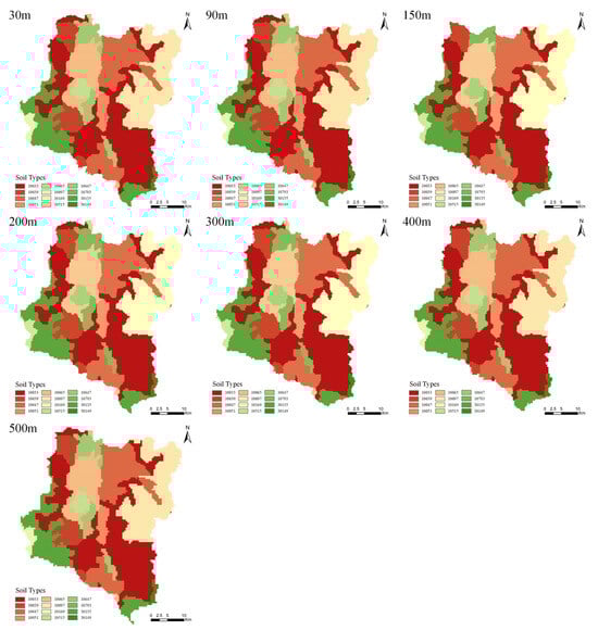 Soil types at different DEM resolutions in the Mazhou watershed.
