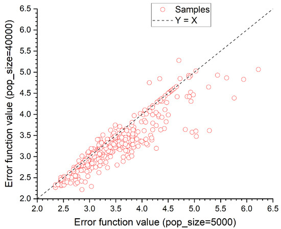 results between the same grouping result combination in the NSGA2 model population sizes of 5000 and 40,000.