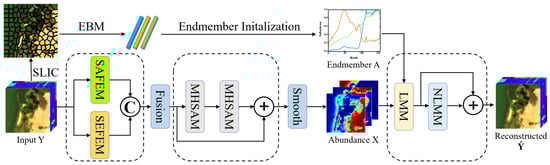 45], where spatial information is initially utilized for effective endmember extraction, subsequently fixed into the decoder of the abundance estimation network. 1D CNN is then employed to extract the spectral features of HSI, facilitating more accurate abundance estimation. To achieve end-to-end learning, SSANet [