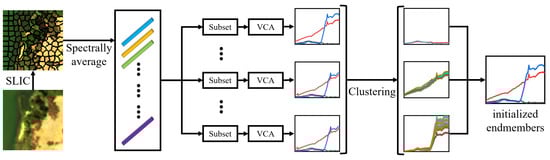63]. The spectral within the same group are averaged to alleviate the impact of outliers and noise. We further optimize the SLIC-VCA algorithm by following the concept of endmember bundles.