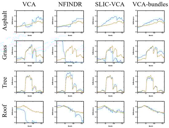 13]: The most commonly used abundance estimation method. In our experiments, VCA-bundles were used as the endmember extraction method in conjunction with FCLSU.