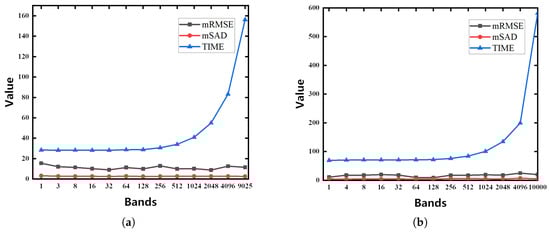 The mean spectral angle distance (mSAD) was used to evaluate the quality of the extracted endmembers, while the mean root mean square error (mRMSE) was utilized to assess the accuracy of the abundance estimation, which are defined as follows: