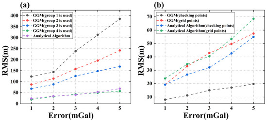 In Section 3.2, we analyzed the dependency of the GGM on ship sounding data. In this section, we further discuss the stability of the GGM and the analytical algorithm using simulation methods, including the impact of ship sounding coverage and gravity anomaly errors on both algorithms.