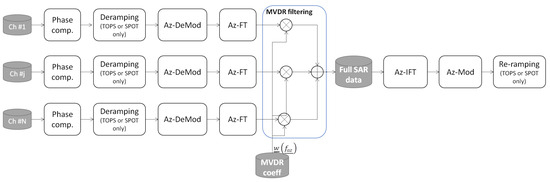 - Gebert, N.; Krieger, G.; Moreira, A. Multichannel Azimuth Processing in ScanSAR and TOPS Mode Operation. IEEE Trans. Geosci. Remote Sens. 2010, 48, 2994–3008. [Google Scholar] [CrossRef]