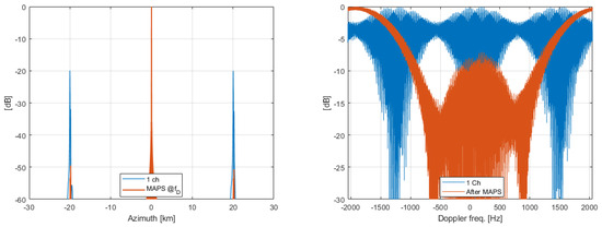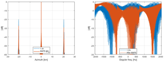 - MAPS-recombined data go through the inverse operations of steps (4), (3), and (2), i.e., Az-IFT, azimuth modulation to nominal Doppler centroid, and re-ramping.