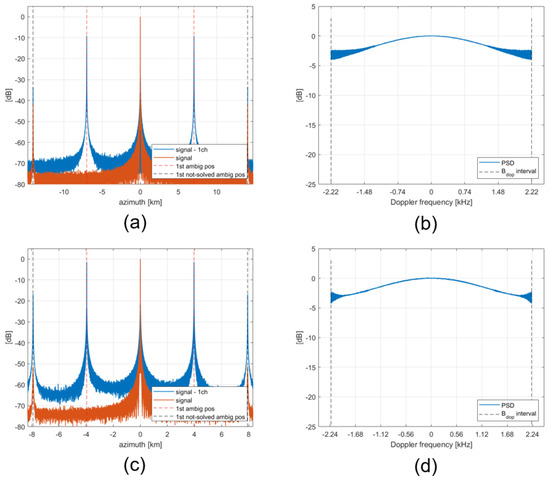 - Richter, D.; Rodriguez-Cassola, M.; Zonno, M.; Prats-Iraola, P. Coherent Azimuth Ambiguity Suppression Based on Linear Optimum Filtering of Short Along-Track Baseline SAR Interferograms. In Proceedings of the EUSAR 2022, 14th European Conference on Synthetic Aperture Radar, Leipzig, Germany, 25–27 July 2022; pp. 1–5. [Google Scholar]