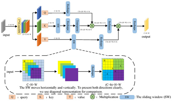 In the stage where self-attention calculates correlations through matrix multiplication, we perform a simple spatial transformation operation on Q. The purpose is to ensure the use of relatively raw information to evaluate positional and long-range information, making the obtained information reliable. We apply a sliding window operation to K and V to obtain more accurate information after two rounds of correlation calculations. Additionally, by leveraging the properties of matrix multiplication, we directly obtain the original size instead of employing other spatial dimension reduction methods that may impact the resulting features. Furthermore, we employ a multi-head mechanism to simultaneously focus on different locations, thereby enhancing the model’s expressive capability. Through the processing of features using SHMA, we achieve data augmentation during the module processing stage. The resulting features possess enriched positional information, long-range information, and local details.