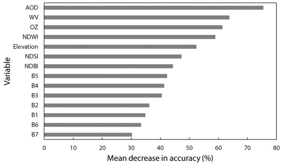 Mean decrease in accuracy of the RF-based river ice mapping model using the input variable selection scheme 5.