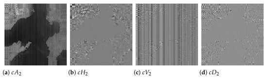 After the decomposition of an infrared remote sensing image by multi-level and multi-scale wavelet transform, four sub-images of the horizontal, vertical, diagonal, and approximate components can be obtained [,].