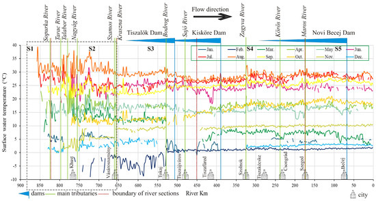 3.4. Influence of Tributaries and Dams on the Thermal Profile of the Tisza River