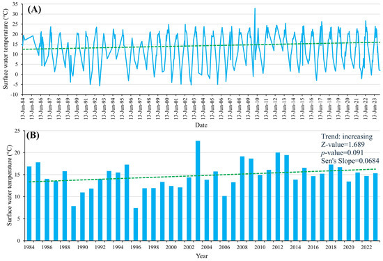 3.5. Influence of Climate Change on the Surface Water Temperature of the Tisza River (40 Years of Satellite Data)
