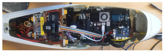 Figure 5 shows the payload integrated into the UAV platform: “ET-Air/Mini Cruiser” [40]. The UAV platform was heavily customized by NTNUs UAVlab and provides the radio downlink through which real-time communication between an operator and the payload is possible.