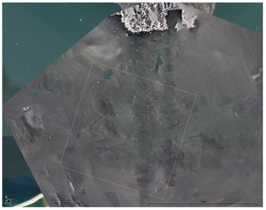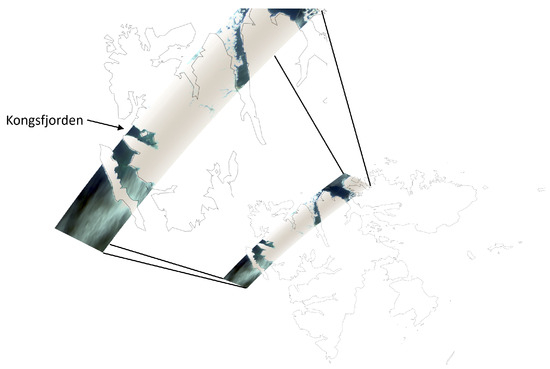 Orthophoto reconstructed with the image processing pipeline and ODM overlaid over a satellite image from SvalbardTopo.