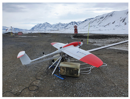 The mission outlined in this paper was part of a broader initiative that took place in Ny-Ålesund/Svalbard in May 2022. This overarching mission sought to implement and test the concept of the “observational pyramid”. Figure A11 shows this schematically. In addition to the UAV with remote sensing equipment described in this paper, several other robotic agents were deployed. Among them were several unmanned surface vehicles (USVs), autonomous underwater vehicles (AUVs), as well as satellite remote sensing [72]. On top of that, crewed boats were used to take in situ measurements, complementing the robotic measurements and providing ground truth to validate the measurements taken by the robotic agents.