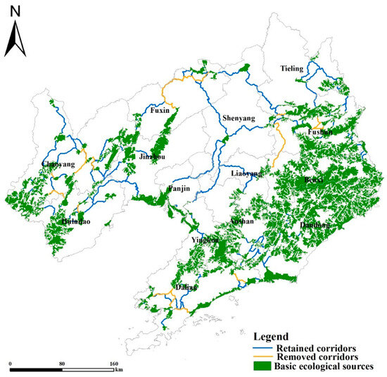Protecting the forests in eastern Liaoning Province can maintain important ecological services of water conservation. In Fushun City and Anshan City, the land use structure is unreasonable, and the proportion of urban green space is low. However, the proportion of industrial and residential land is high [38]. Supplementary ecological sources and corridors can enrich the local ecological network and improve ecological functions in urban areas. In general, supplementary ecological networks are an extension of basic ecological networks that can enhance the details of regional ecological networks and fill in hollow areas. Further, much-related research has been conducted on their effects on improving the resilience of regional ecosystems.