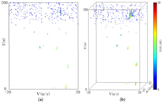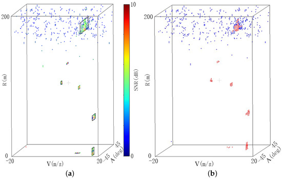 Finally, the SNR of the vehicle and clutter can be obtained based on the range (R), velocity (V), and angle (A) information [38].