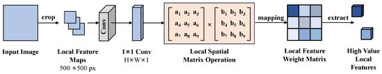 The score map module is a convolution attention mechanism based on dimensional reduction, which aims to enhance the efficiency of information propagation between channels within the local branch (Figure 2). This mechanism utilizes global average pooling to compute the global feature vector, thereby representing the contextual information of the entire image by averaging feature maps across each channel.