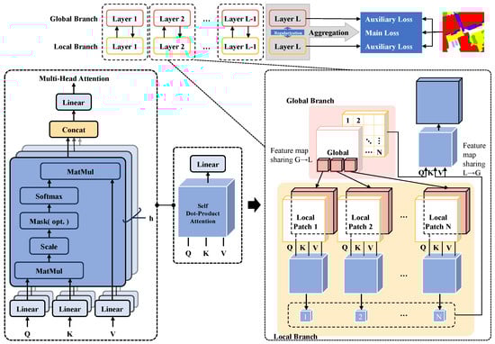 The fast fusion mechanism facilitates seamless integration between the global and local branches, enabling extensive collaboration through the fusion of feature maps at each layer using multiple attention weights. The model’s depth determines the number of layers, while the merging process occurs N times based on the number of cropped global patches. Subsequently, these attention weights are computed by leveraging local and global features such as Q, K, and V. The optimization objective in this study encompasses a primary loss derived from the merged results along with two additional losses.