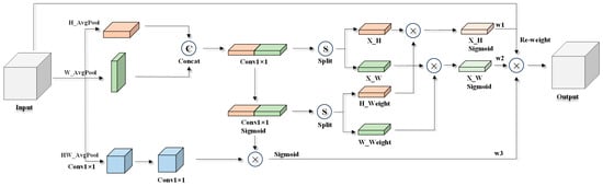where denotes the sigmoid function, and represent the weights for enhancing feature information in the vertical and horizontal directions, respectively, and and denote the final weights obtained from the first and second branches, respectively.