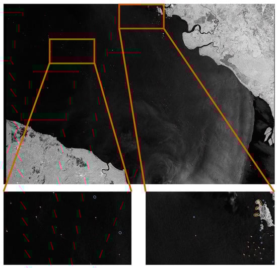 The RSDD-SAR dataset includes 7000 images, which contain a total of 10,263 ship targets with sizes of 512 × 512 and resolutions ranging from 2 to 20 m. The RSDD-SAR dataset features a rich variety of scenes, including typical scenes of harbors, shipping channels, offshore low-resolution, and offshore high-resolution areas. The images in both datasets are mainly from the RadarSat-2, TerraSAR-X, and Sentinel-1 satellites. These datasets contain a variety of different scenes in different imaging modes and are therefore highly suitable for measuring the multi-scale SAR ship detection performance of the model.